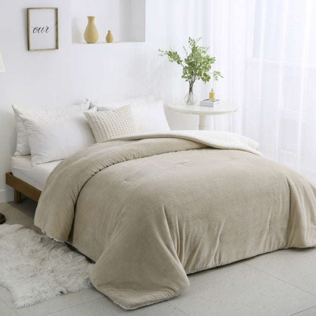 Praticidade e Estilo: A tonalidade neutra e elegante deste coberdrom facilita a combinação com qualquer decoração de quarto, trazendo praticidade e sofisticação.