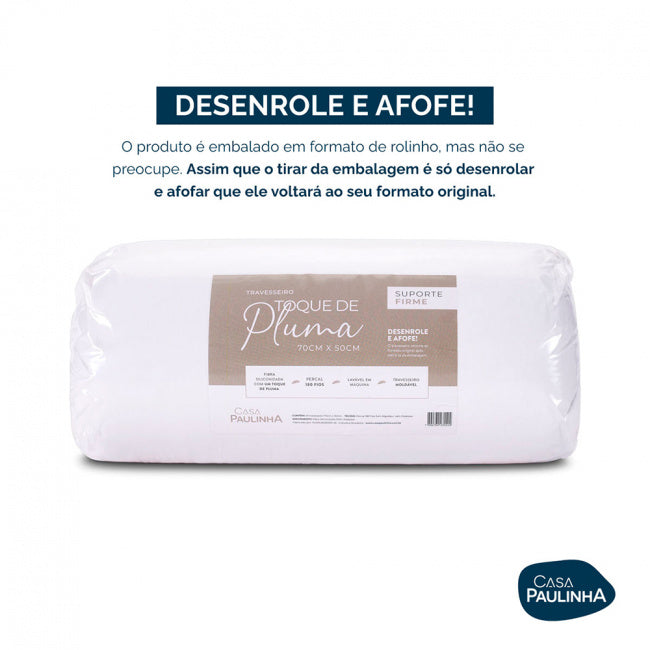 O produto é embalado em formato de rolinho, mas não se preocupe. Assim que o tirar da embalagem é só desenrolar e afofar que ele voltará ao seu formato original.